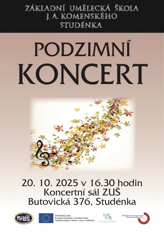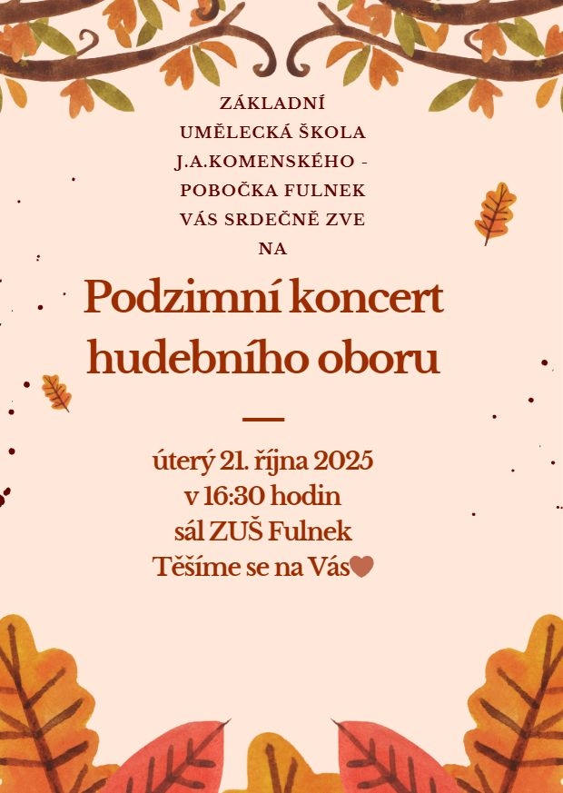 Srdečně zveme všechny příznivce naší školy k návštěvě Podzimních koncertů, které se letos uskuteční ve Studénce a ve Fulneku.